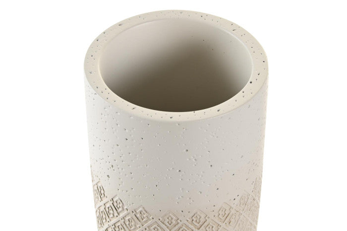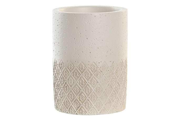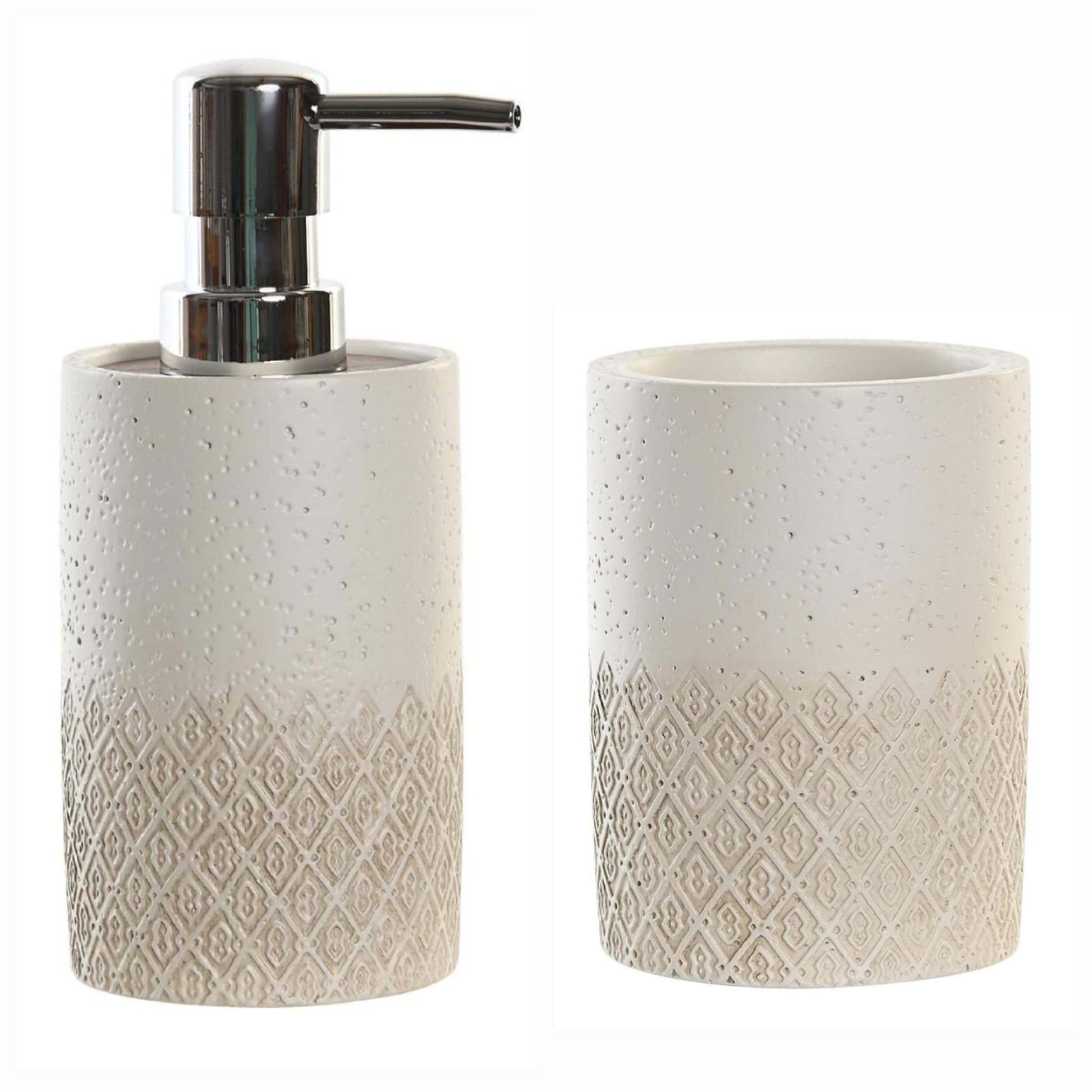 Conjunto de baño de Annes Home de resina color crema con textura en relieve en la parte inferior que combina patrones geométricos decorativos y la parte superior acabada de madera acacia, ideal para decorar baños minimalistas.