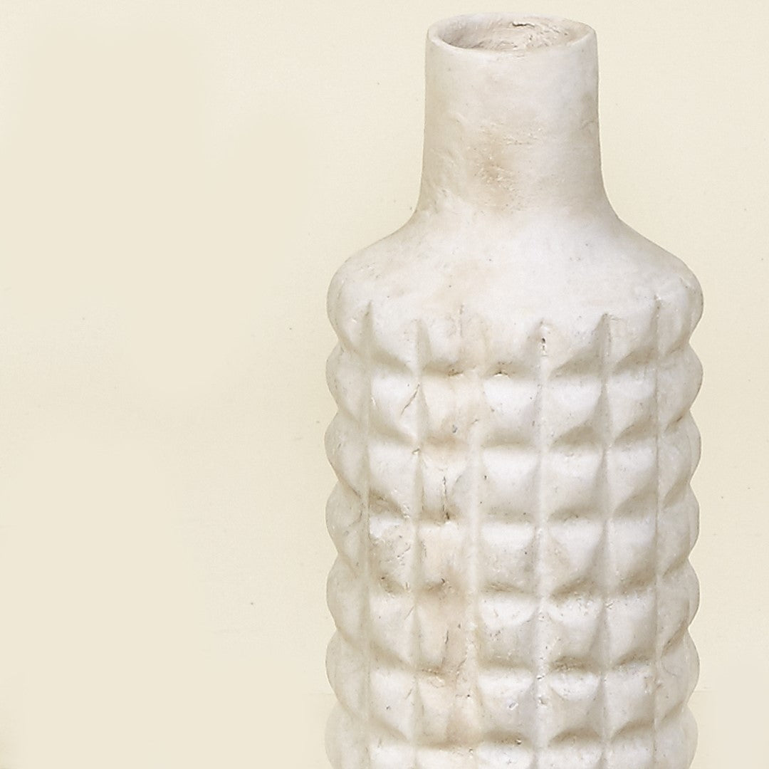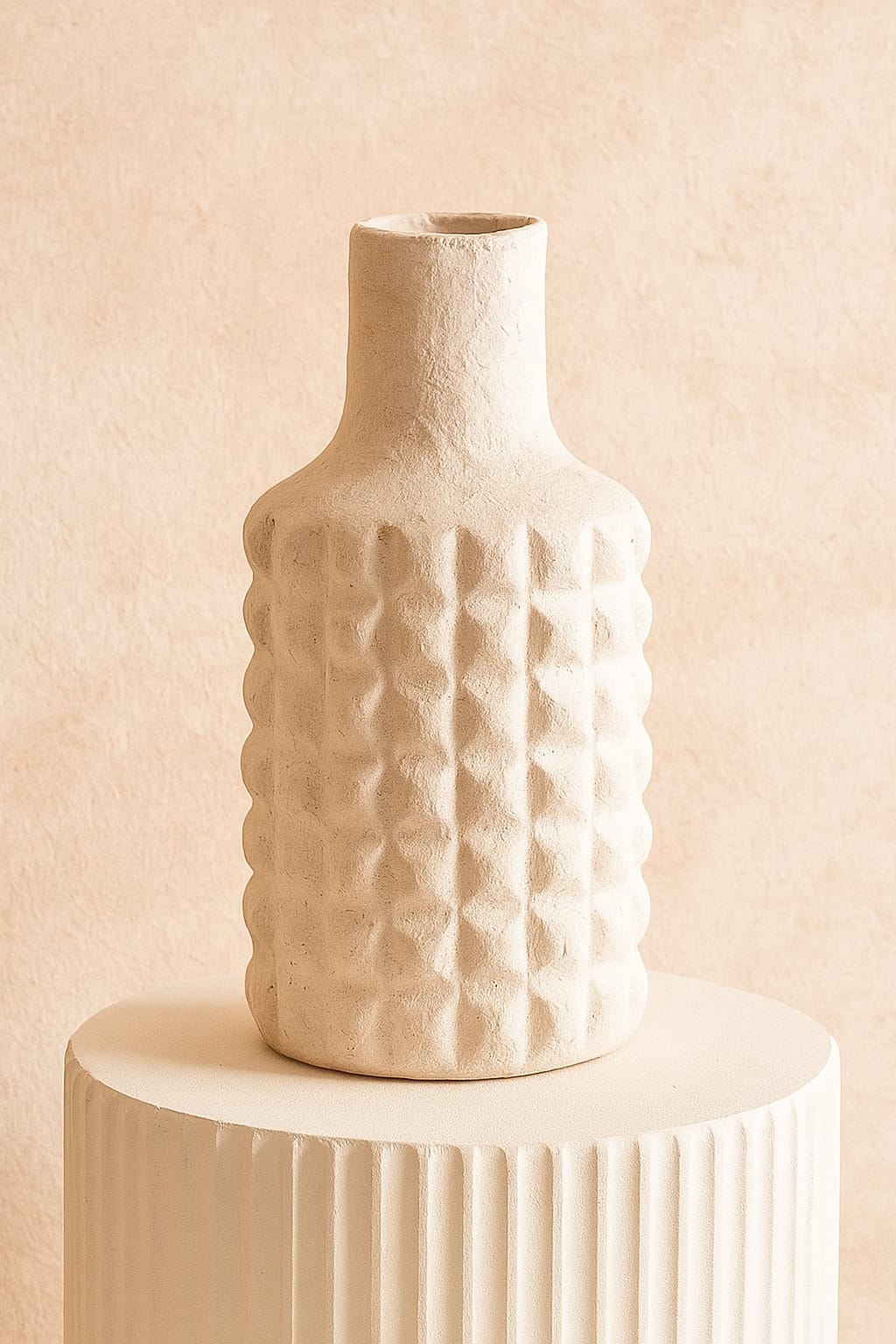 Jarrón con diseño geométrico de Annes Home , está hecho de papel maché, lo que lo convierte en una opción sostenible. El material reciclado y su proceso artesanal destacan como características ecológicas, ofreciendo una alternativa decorativa y respetuosa con el medio ambiente.