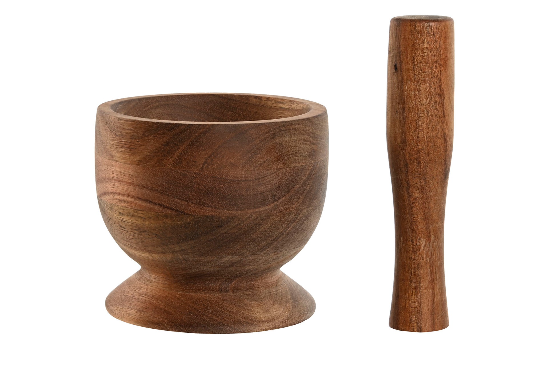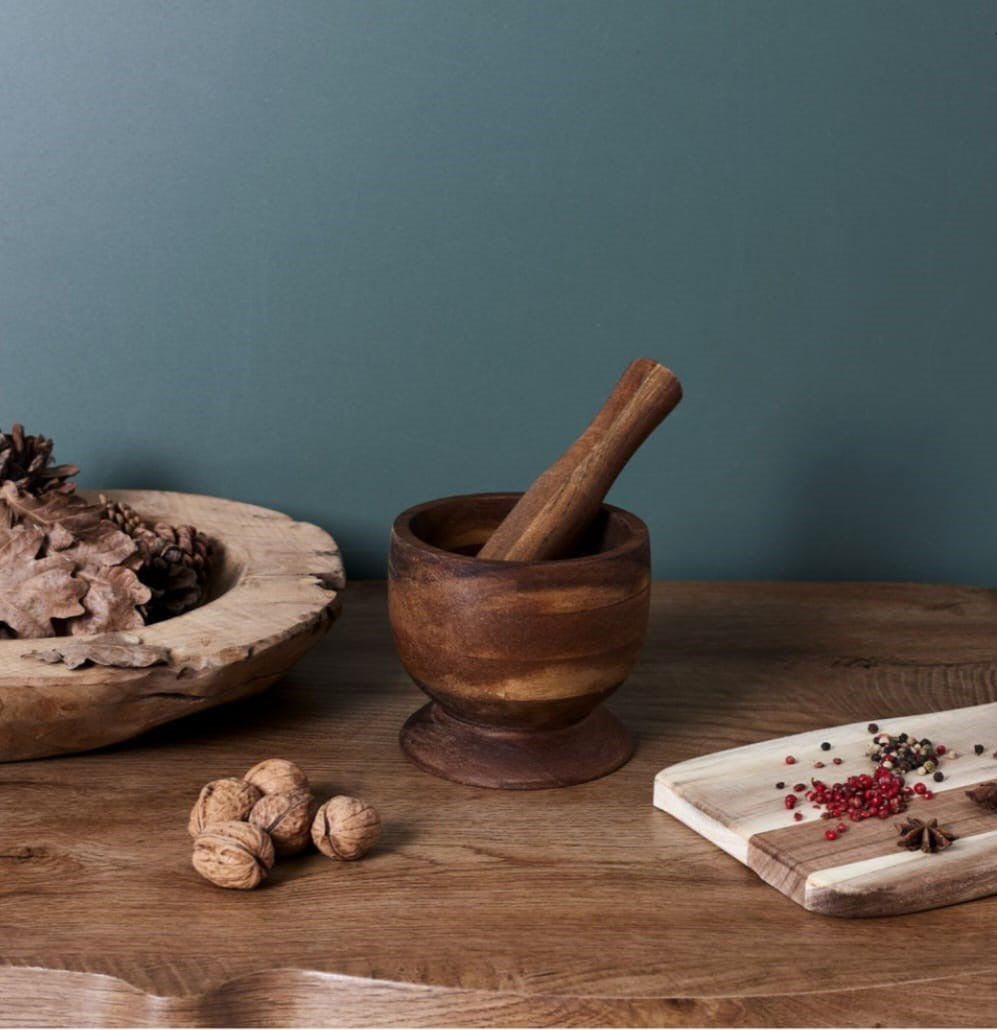 Este mortero está fabricado en madera de acacia. Ideal para moler y triturar especias, hierbas y otros ingredientes, este mortero combina funcionalidad y estilo. Su diseño ergonómico garantiza un agarre cómodo y eficiente. Perfecto para cualquier cocina que valore la calidad y la estética natural que os ofrece Annes Home.