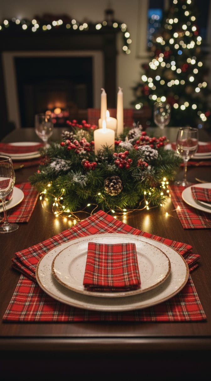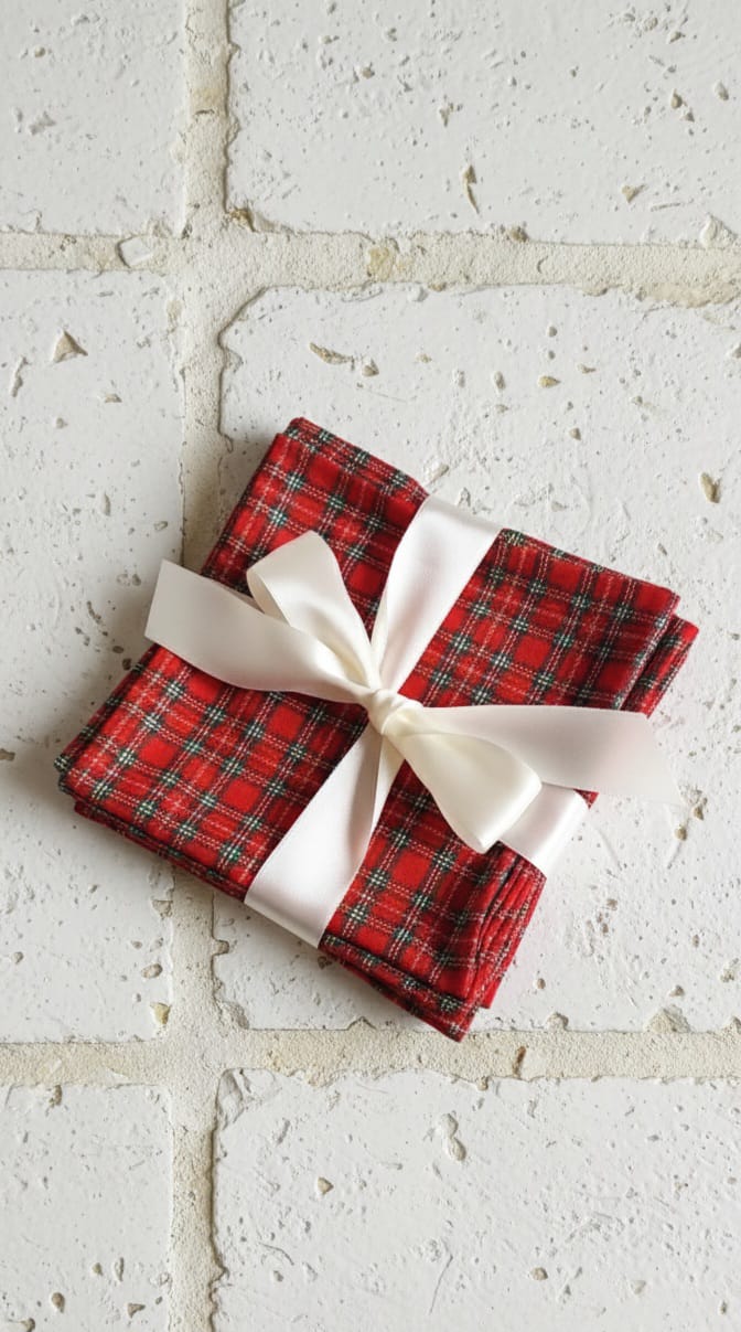 Servilletas de Annes Home con diseño de cuadros rojos y varios detalles decorativos.