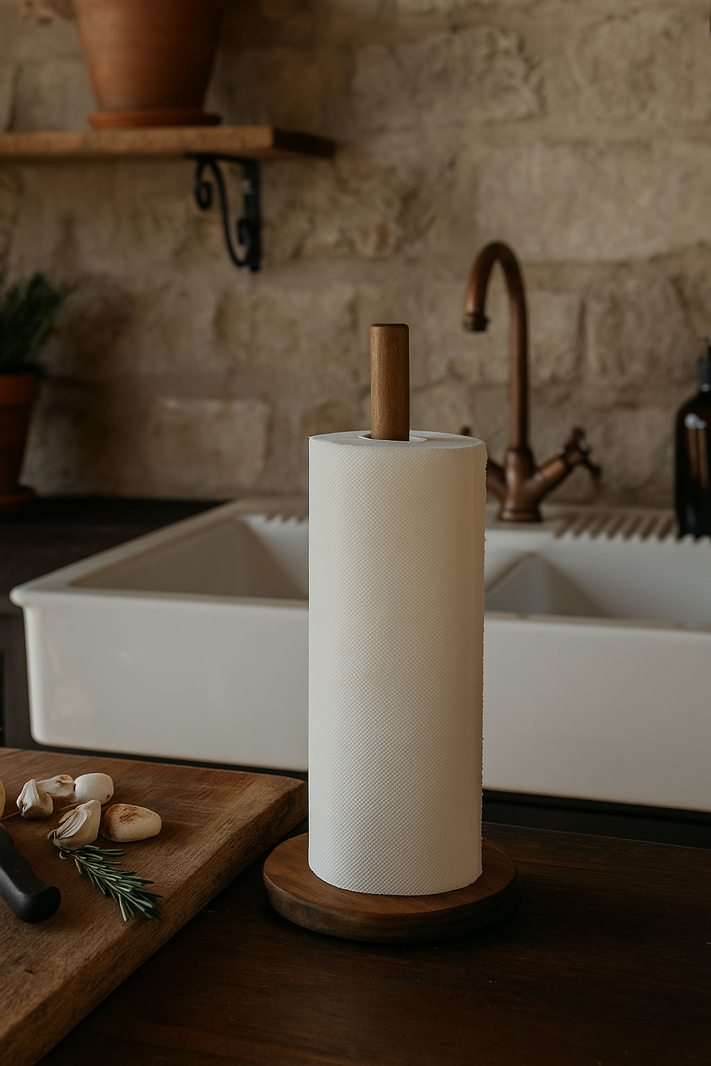Este portarollos de acacia de Annes Home tiene un diseño simple y funcional. Está hecho de madera de acacia, lo que le da un aspecto natural y cálido. Es un accesorio de cocina práctico y estéticamente agradable, ideal para quienes prefieren un estilo rústico o natural en su hogar.